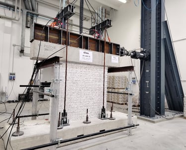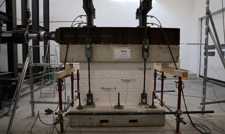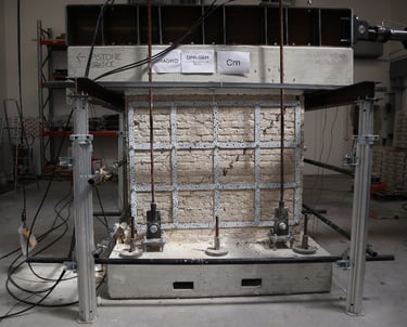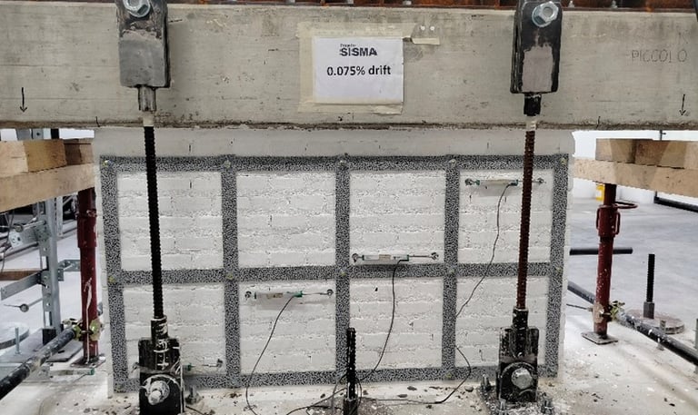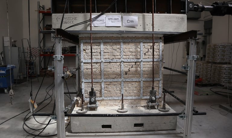 Disponiamo di attrezzature per prove pseudo-statiche cicliche su pareti murarie e portali in cemento armato in scala reale, prove di rottura su elementi e connessioni e caratterizzazioni dei materiali. Le prove pseudo-statiche cicliche consentono di simulare gli effetti del sisma e confrontare in modo diretto le prestazioni di elementi rinforzati e non rinforzati. Le prove di rottura e caratterizzazione permettono invece di conoscere con dettaglio il comportamento dei singoli componenti, individuare punti deboli e migliorare costantemente i sistemi costruttivi.